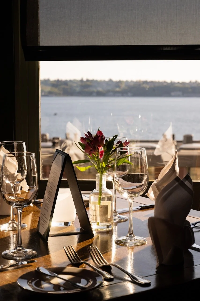 Notre cuisine est tout aussi exceptionnelle et fait notre réputation depuis plus de 30 ans à Seattle. Le Chef utilise des produits locaux de saison et des techniques culinaires bien françaises. Les menus changent donc avec la saison et nous avons des plats signature comme les Moules Penn Cove ou le Canard Confit.